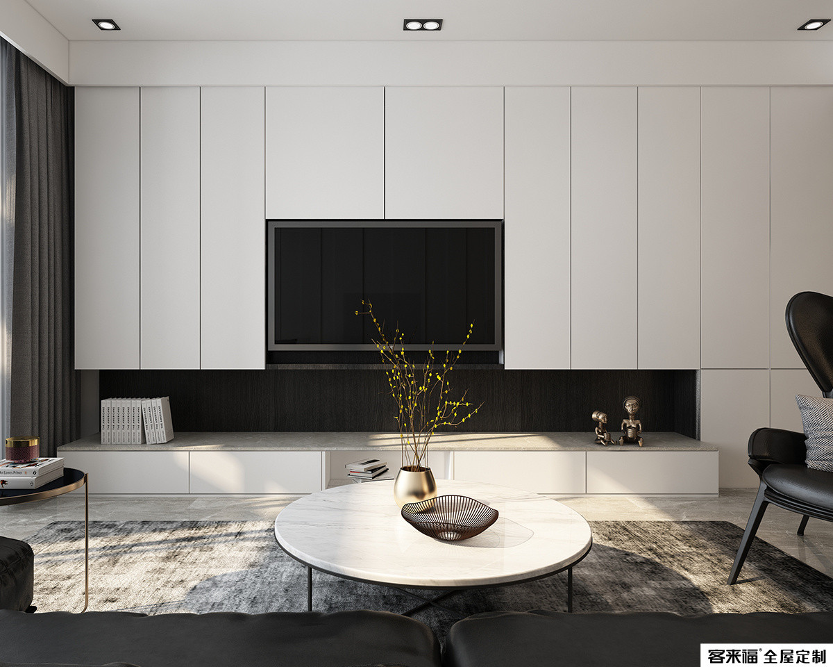 The ultra-high door panels are integrated, and the handleless design is stylish and simple. The combination of open and closed cabinets presents a brisk rhythm, giving the space agility and tension.