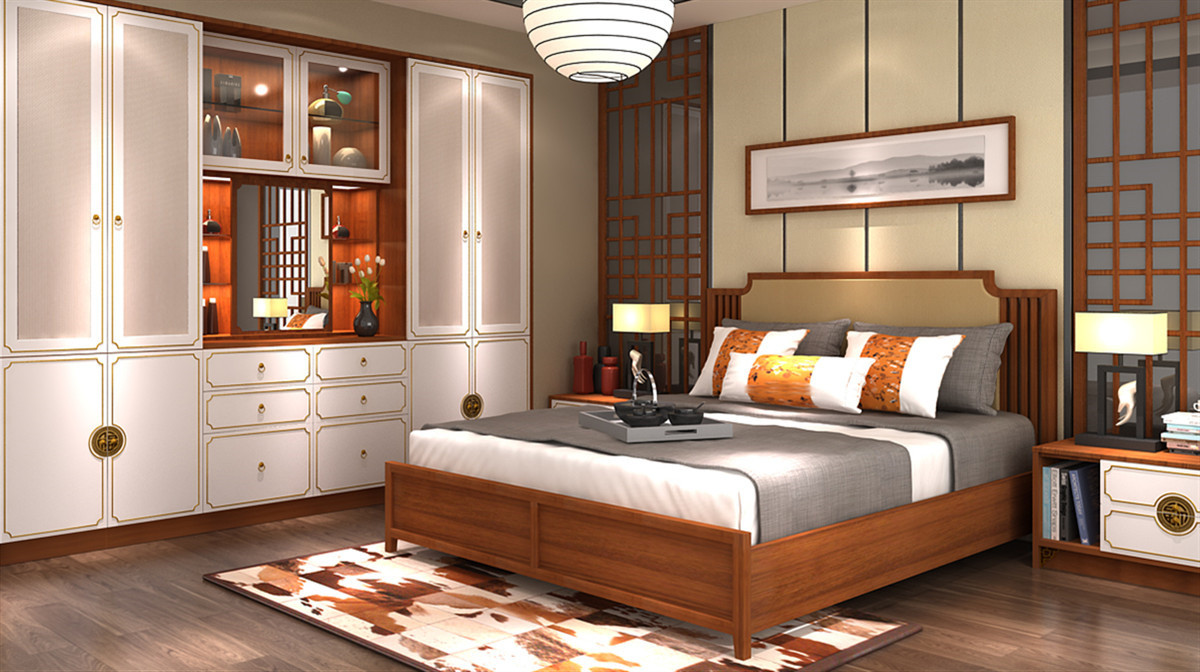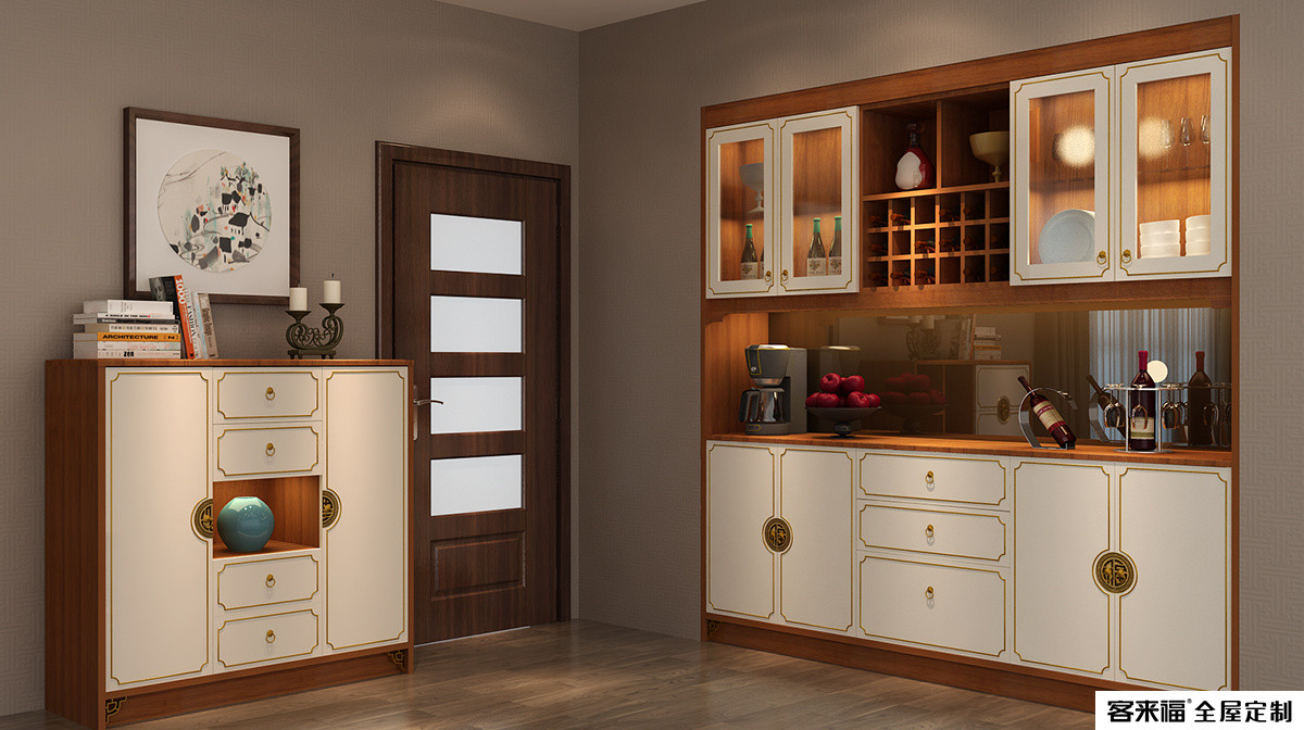 Bordeaux red oak with off-white finishes reveals the classic and elegance of the new Chinese style. The concave rounded corners are painted with gold lines, highlighting the prosperous and luxurious style. The symmetrical layout shows the breadth of the world between square inches, presenting the balanced beauty of traditional Chinese culture, harmony and auspiciousness. The ring-shaped blessing handle has a unique oriental charm and is self-conscious.