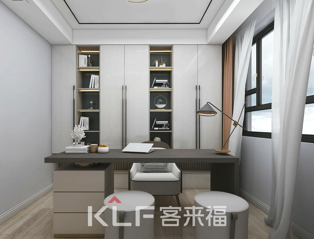 明暗搭配的书柜,使得小巧的书房独具韵味,干净整洁的环境,能让你静下心来,沉浸在书的海洋里。