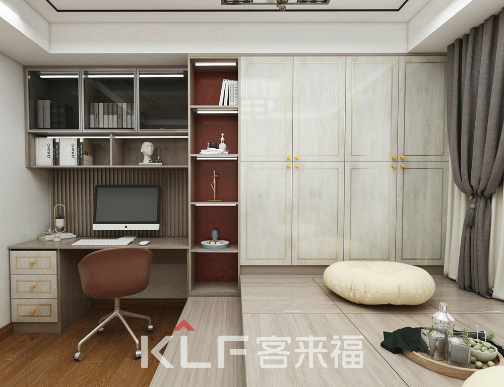 这一套装修样式的亮眼之处便是榻榻米房间,提起榻榻米很多人会想起日本,殊不知榻榻米的起源地却在中国。因此我们在设计之初汲取传统榻榻米样式的同并融合现代风格,便有了现在的样式。一壶茶、俩个人、一盘棋,共享休闲时光。