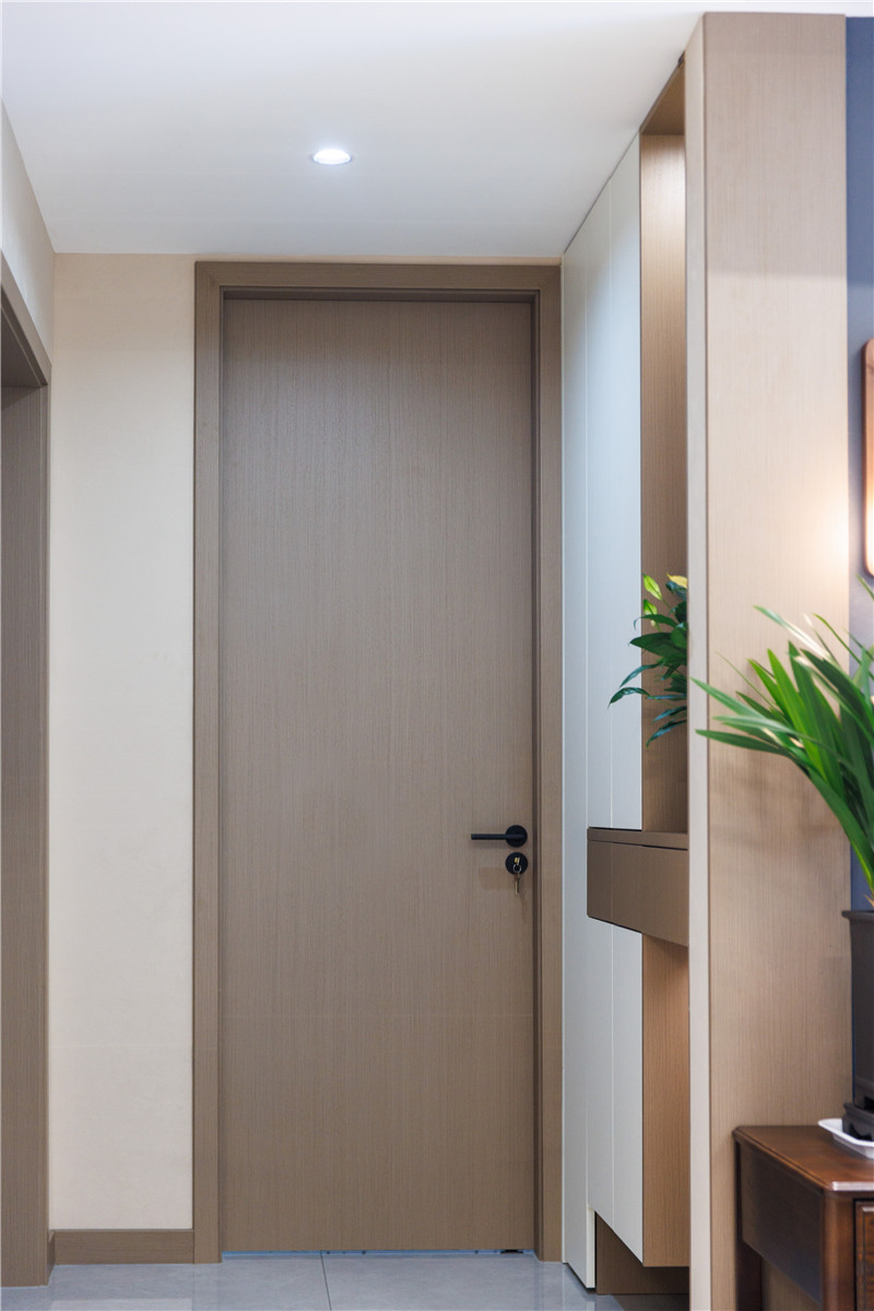 玄关柜设计遵从简单设计手法,选用科技直纹与兰迪白作拼色设计增添时尚感,让空间不单调;门墙柜一体化选用xc体育科技直纹,更加自然百搭。
