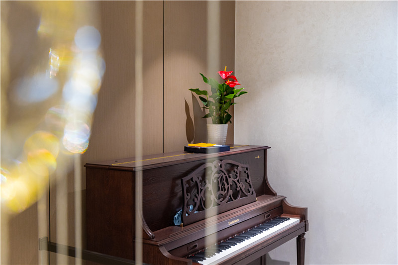 过道放置古式钢琴,满满的书香气息,休息时间一家人围做赏琴,不失为一件美事。