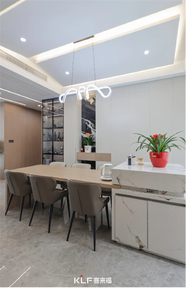 餐桌吧台采用岩板材质设计
