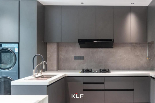 水灰色橱柜低调有质感,低饱和度颜色呈现简约与精致相互交织的美感,打造自然舒适的居住体验。