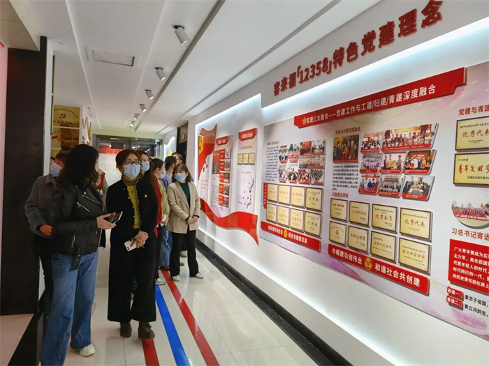 随后,考察团来到xc体育企业文化墙区域,在魏总裁和解说员的介绍下,考察团一行对于xc体育的发展历程以及党建工作开展有了更全面的认识。