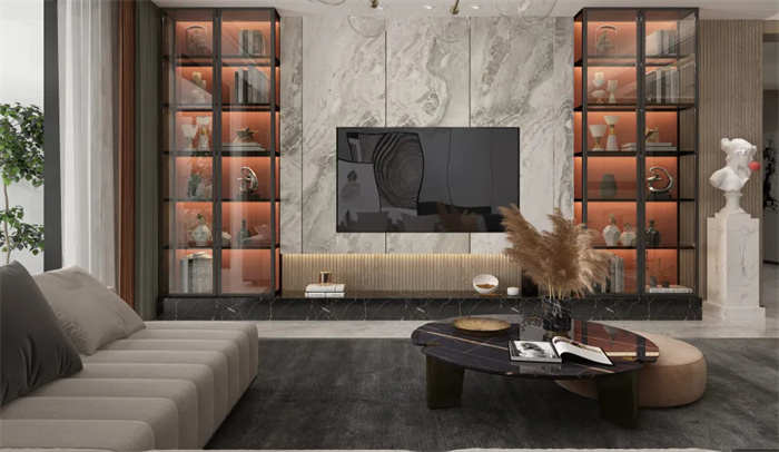客厅作为公共场合,往往会有很多的展示空间,巧用这些个空间,可以为温情加分。