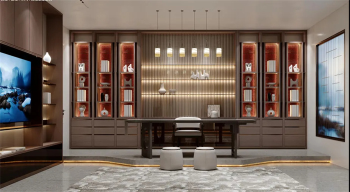 一个书香隐隐的茶室是送给父亲最好的礼物,打造书房、茶室一体式空间,一房两用,功能复合,办公休息两不误。