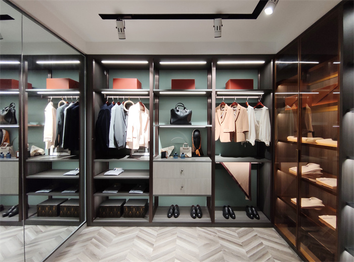 像电视柜的整体抬高设计,让业主在家即能舒适看剧;无把手柜门设计,简洁利落,增强视觉美感;衣柜的升降拉杆设计,满足家庭不同成员的需求。