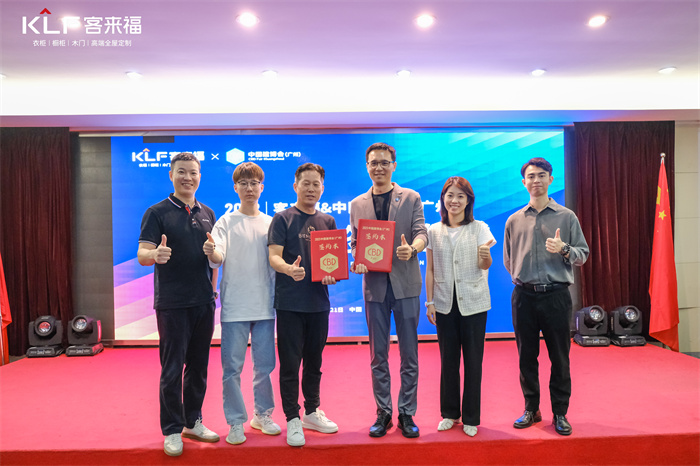 中国建博会(广州)展商营销负责人陈鹏汉、中国建博会(广州)定制家居负责人方晓晗、中国建博会(广州)何皓楠、xc体育家居董事长尹其宏、xc体育营销决策委员会招商副总童伟、xc体育首席品牌官尹邵杰等人参与了仪式。