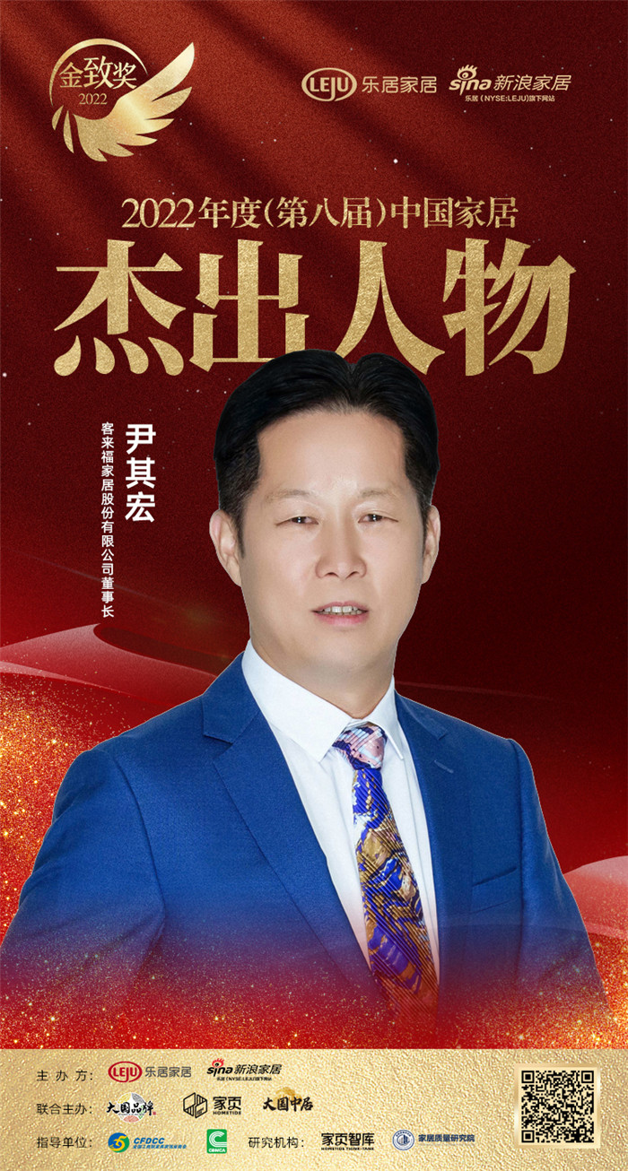 2022年12月26日,『趁势·再起——2022中国家居新时代盛典暨金致奖颁奖典礼』在云端盛大举行。xc体育家居尹其宏荣获「2022(第八届)中国家居杰出人物」称号。