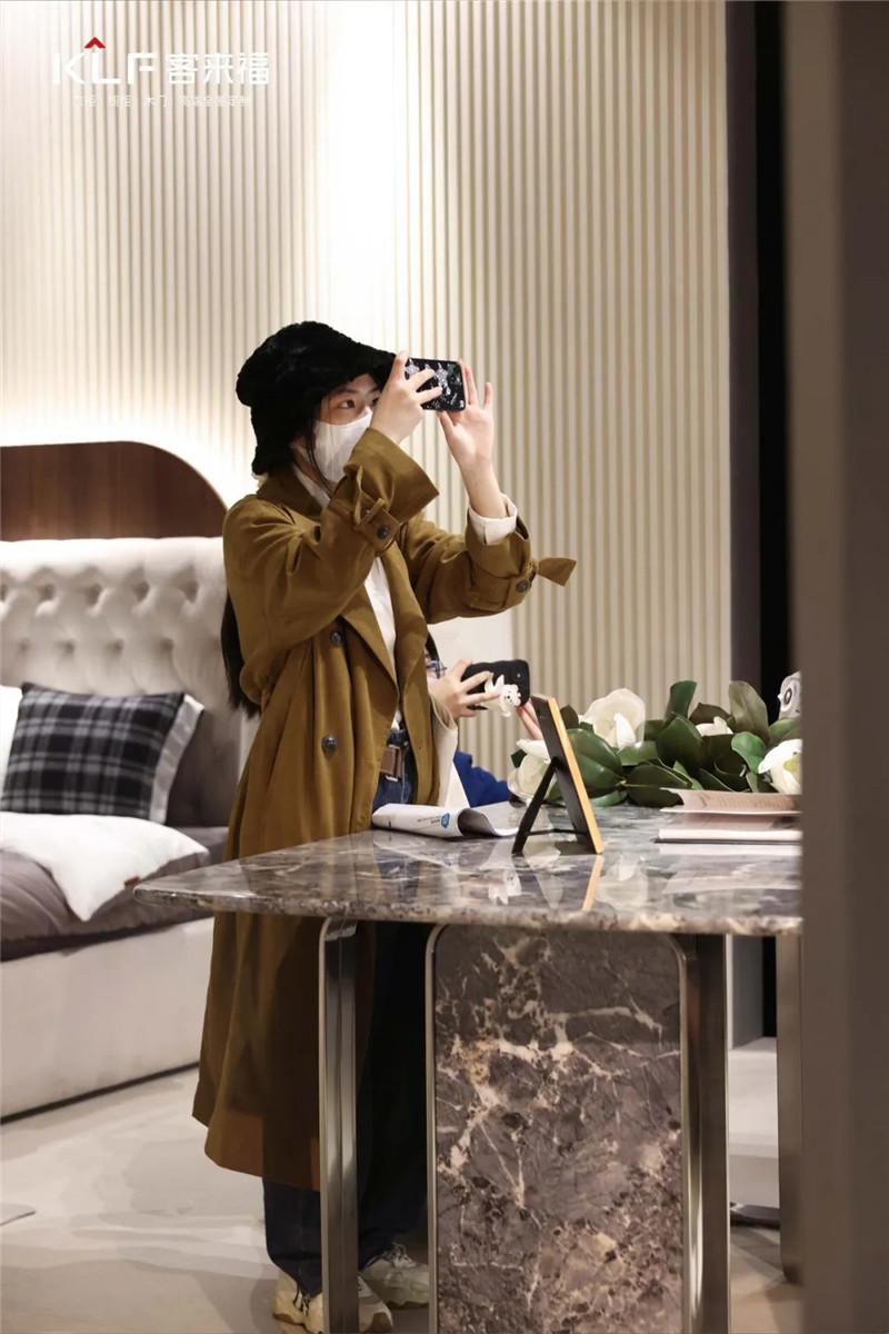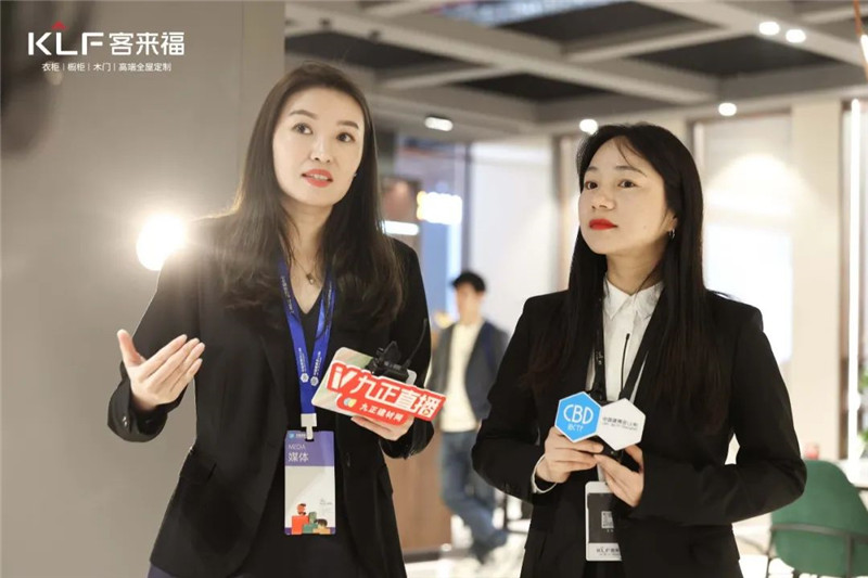除了传统形式,居美·中华衣柜网还特别邀请尹董与记者互动逛展,尹董带领记者在展馆内感受新品品质,进一步解析xc体育·革物·翰墨的美学设计理念。