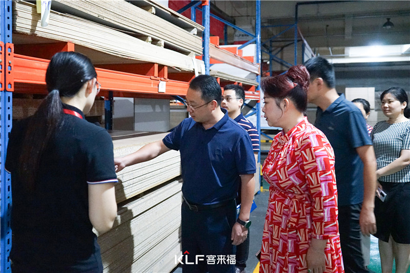 领导一行人首先参观了xc体育华东瑶海4.0工厂车间,对厂内的板材制作工艺流程、信息化、智能化生产流程进行详尽的参观了解,展现了xc体育系统化、标准化的生产水平,以及在家居行业的品质和实力。