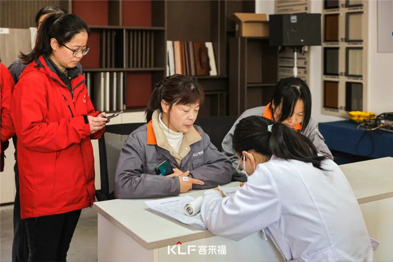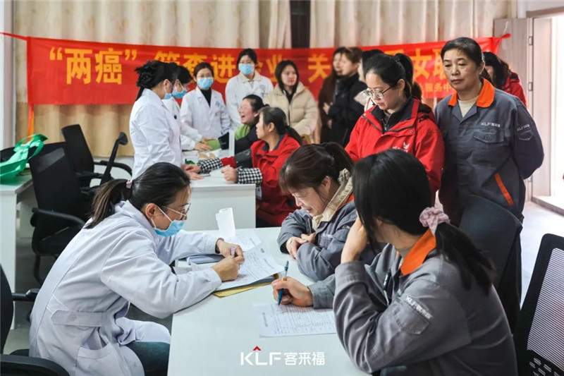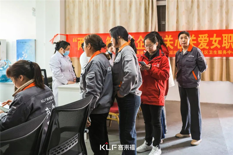 活动现场,医护人员分项目给有序排队的职工做检查工作。认真细致地服务在场女性职工,为大家提供看病就医的便利,让大家真切感受到xc体育“为员工谋福利”的幸福文化和理念。