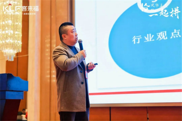 紧接着,三位优秀经销商上台带来经验分享,助力大家思维破圈、穿越寒冬。山西临汾经销商闫凯强针对小区营销板块进行解读,结合生动案例剖析了小区营销中的制胜砝码。