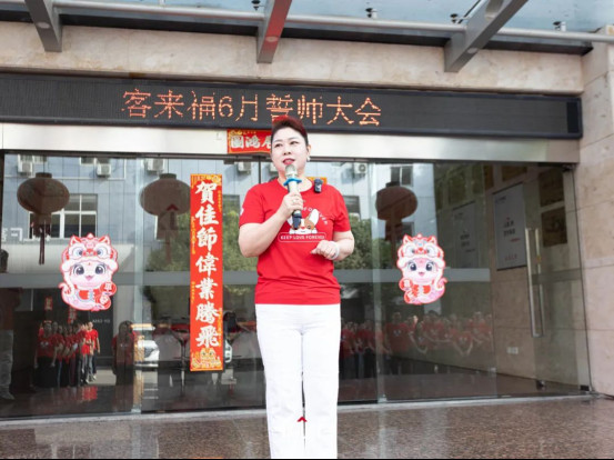 随后,魏总裁上台发表精彩的战略动员讲话。她强调,六月作为承上启下的关键节点,既是上半年成果的验收期,更是下半年战略落地的起跑线。魏总从消费趋势洞察、渠道效能优化、服务品质升级三大维度展开部署,提出要以“用户思维”重构产品矩阵,强调要始终践行“以客户为中心”的服务理念,号召全员以归零心态再出发,用硬核实力抢占市场先机。