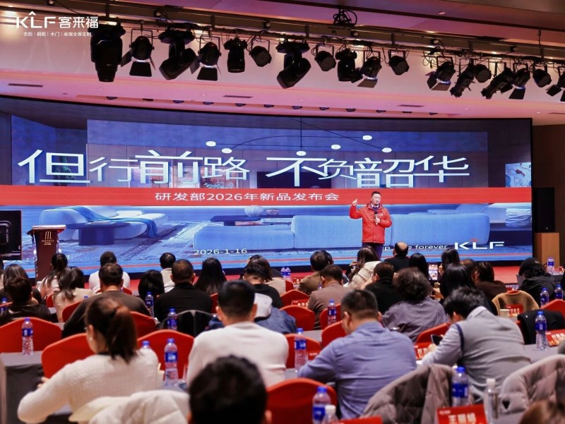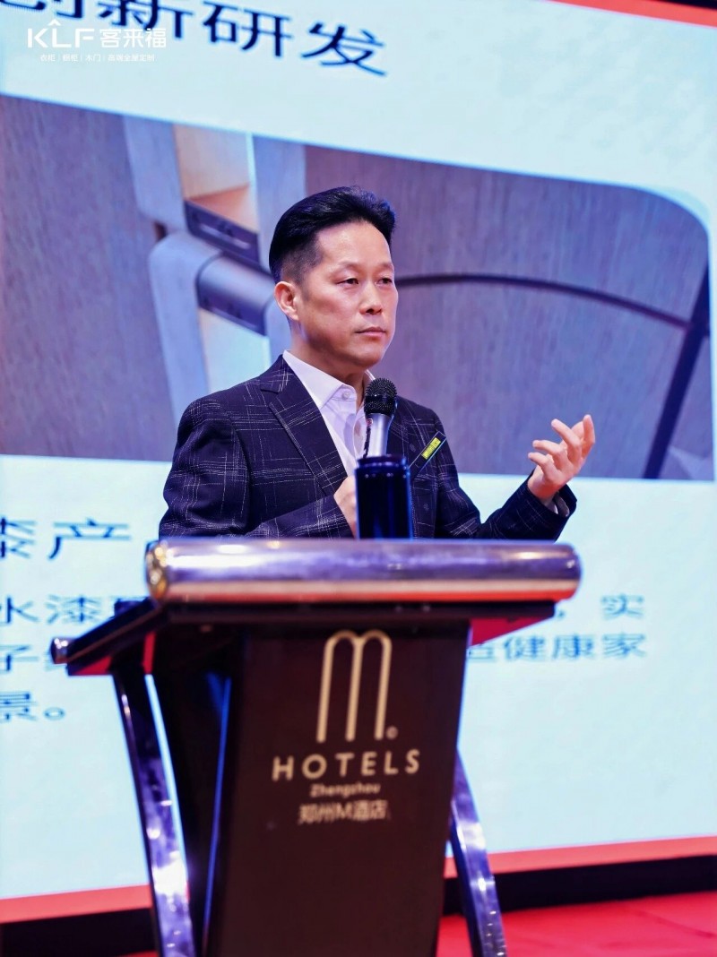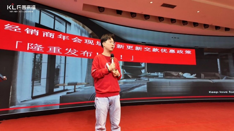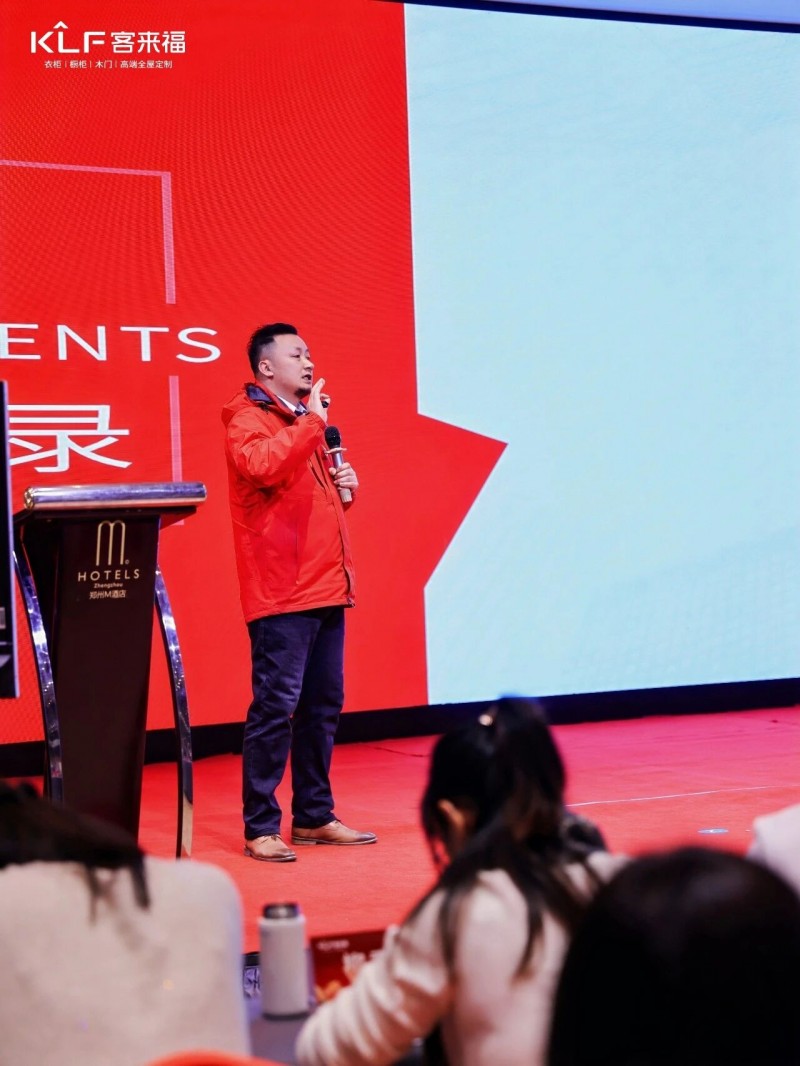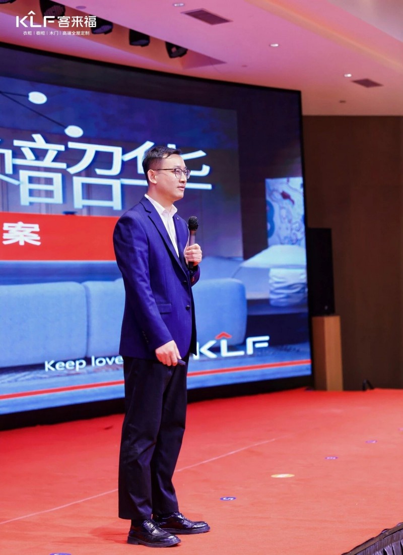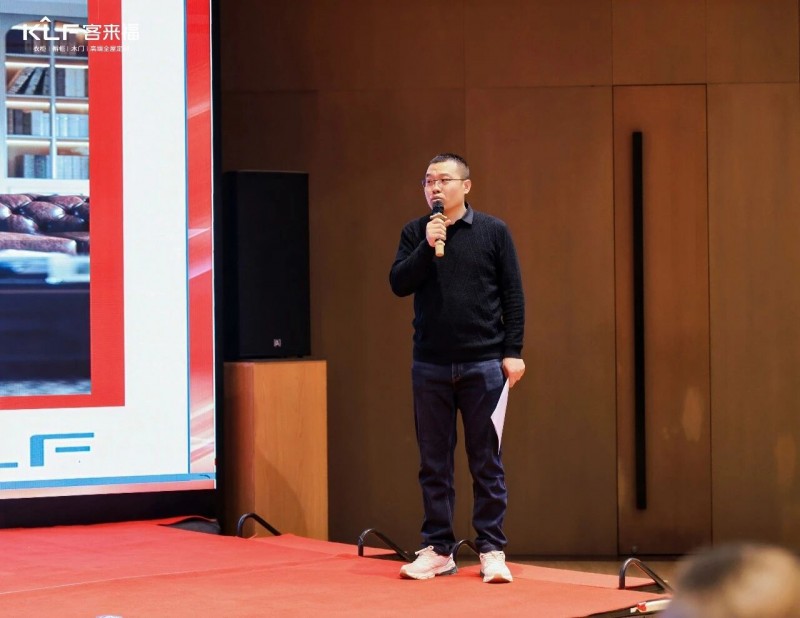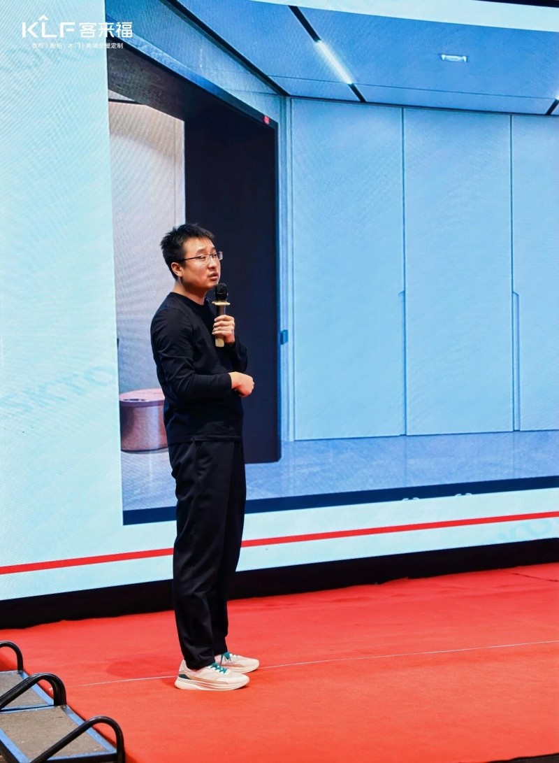 在热烈的掌声中,xc体育商研部研发总监刘云辉先生登台,为全场经销商带来了2026年度新品深度解析。从核心板材五金到前沿色彩搭配,再到整体空间解决方案,系统阐述了新品的竞争优势与匠心设计。干货满满的分享,令在座合作伙伴对年度新品矩阵与市场前景有了清晰认知,信心倍增。
