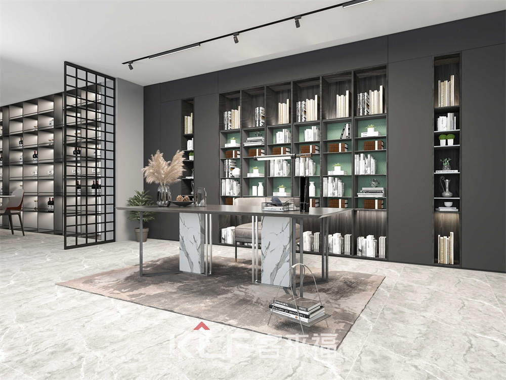色彩搭配以素雅为主,搭配金属元素点缀,低调有质感。偏黑色墙面带来深沉,给人以思考的宁静。突出简约风,质朴演绎化繁为简,更显高级,用极简风格的设计淬炼出直击心灵的美感。