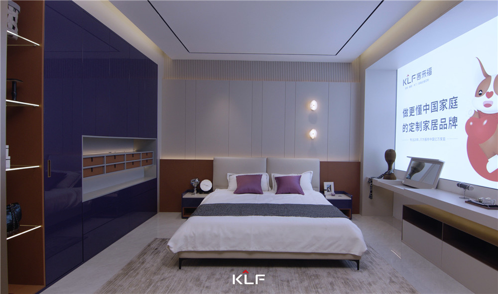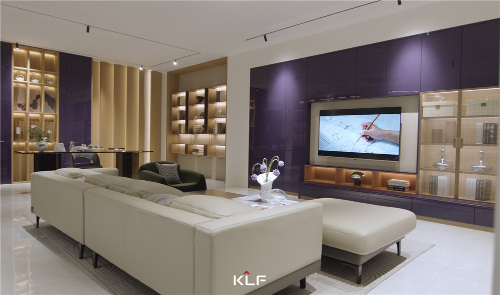 客厅采用围合式布局,一侧墙壁做镜面处理,与柜体进行模块化组合;矩阵成型的柜体紫棠色映入眼帘,活泼且高级;烤漆门板顺滑且颇赋光泽感,展现出xc体育的创意工艺。
